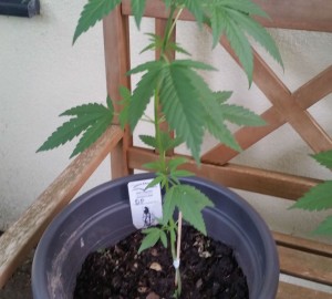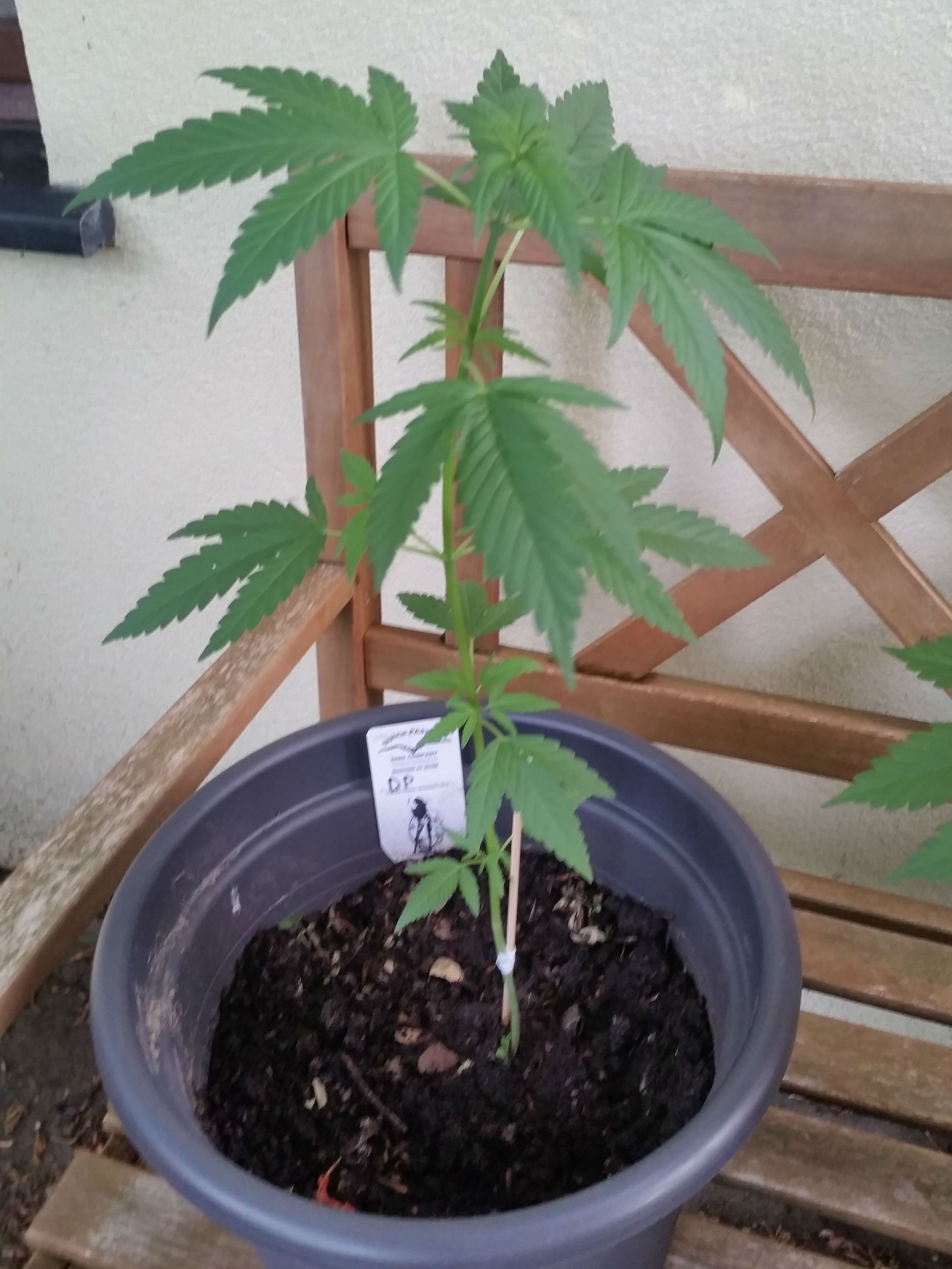 De Frissian Dew is still going steady, een mooie sterke plant die goed groeit met mooie grote bladeren. Ook de zijscheuten groeien goed. Ik kies ervoor om de onderste zijtakken niet weg te dieven dit jaar omdat ik graag van alle 3 mijn soortjes stekken neem. Als je niet weet wat dieven en stekken is, dan heeft rollingstoned vast een mooi artikel over dit onderwerp! (jazeker, hier en hier. red.) De stam maakt het ook goed en begint al meer op een tak te lijken in plaats van een twijgje.