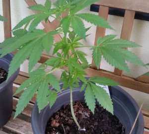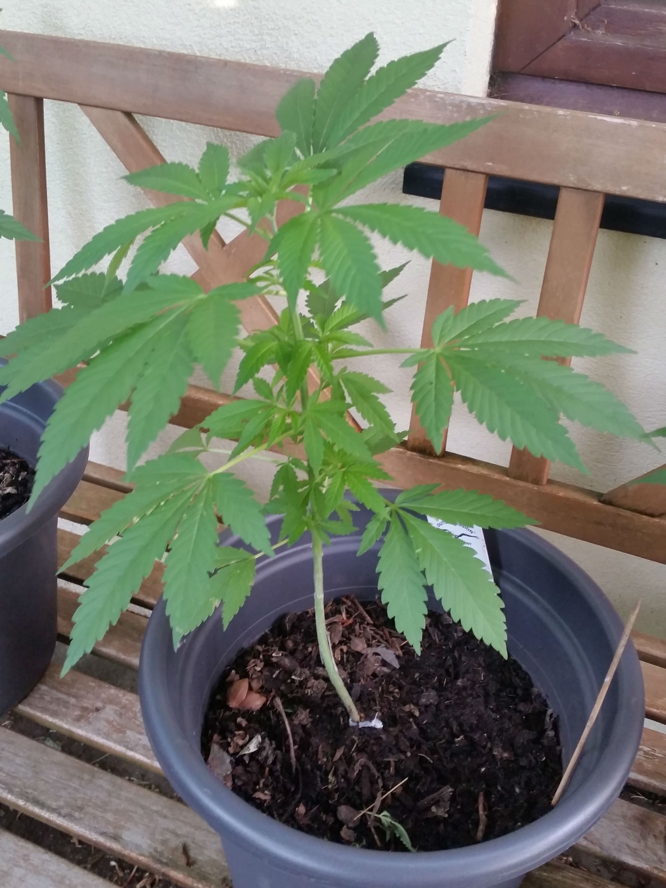Terug naar de planten! De Durban Poison, eentje waar ik een beetje schrik voor had omdat deze wat achter liep op de rest. Gelukkig is daar verandering in gekomen! De pure sativa invloed is nog steeds heel duidelijk te zien. Ze is omhoog geschoten en nu al groter dan de rest. Deze heeft nog wel minder bladgroen maar dat is best normaal bij sativa’s. De zijscheuten hebben echter nog wat werk te doen. De stam is nog niet echt ‘houtmassa’ als ik het zo mag zeggen, maar blijft wel al stevig rechtop staan.