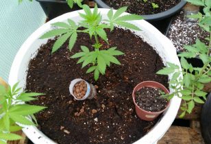 De logees zijn weer naar huis, dit keer zullen ze aldaar in hun serre worden geplaatst. We hebben besloten om ze nu al in de volle pot te zetten omdat ze hun oude schoenen begonnen te ontgroeien. Wat ons betreft had het weer nog wel een graadje of tien hoger gemogen. Kush is nog op zoek naar een smart pot en een airpot om zo de verschillen toch visueel te maken.