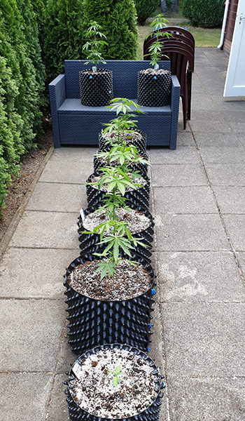 Even een snelle herhaling zodat je weet waar het ook alweer over ging. Mijn buitenkweek bestond uit zeven wietplanten maar dit zijn er nu acht. Er is namelijk een extra Hollands Hope plantje bij de familie gekomen, Hollands Hope #2 dus. Deze heb ik op 8 mei in een koffiefilter gedaan, en op 10 mei zat er een wortel aan van ongeveer anderhalve centimeter. De koffiefiltermethode was dus wéér succesvol. Op 10 mei heb ik het ontkiemde zaadje in een 20 liter Air-Pot gedaan, met Plagron Batmix en extra perliet. Op 16 mei kwam de zaailing boven de grond, en dus heb ik nu buiten de volgende planten staan: