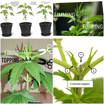 Het verhaal gaat dat iemand wilde toppen maar per dat per ongeluk te hoog deed en er op deze manier achter kwam dat de hoofdtoppen dan niet alleen verdubbelden maar zelfs verdrievoudigen of verviervoudigen. Fimmen heeft dus hetzelfde beoogde doel, echter niet door de top van de plant volledig te verwijderen maar door 60 tot 80% van het bovenste deel van de top weg te knippen. Hierdoor kan er net als bij toppen tenminste een verdubbeling ontstaan, echter bij fimmen kan het dus ook gebeuren dat je ineens drie of vier nieuwe toppen krijgt. Ook fimmen is een high stress methode en doe je alleen tijdens de groeifase.