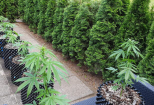 Vervolgens zag ik dat ik hier ook wel erg veel mieren heb. Zolang die geen nest in je potten of onder je planten maken zijn ze niet zo’n probleem, maar de bladluizen die ze kunnen meebrengen en in stand houden dus wel! Nu heb ik het geluk dat ik rondom de cannabisplanten een heg van coniferen heb. Bladluizen hebben hier een aversie voor, omdat coniferen net zoals naaldbomen namelijk een spar-achtige plant is. De natuur is dus heel mooi, en kan zichzelf in balans houden.