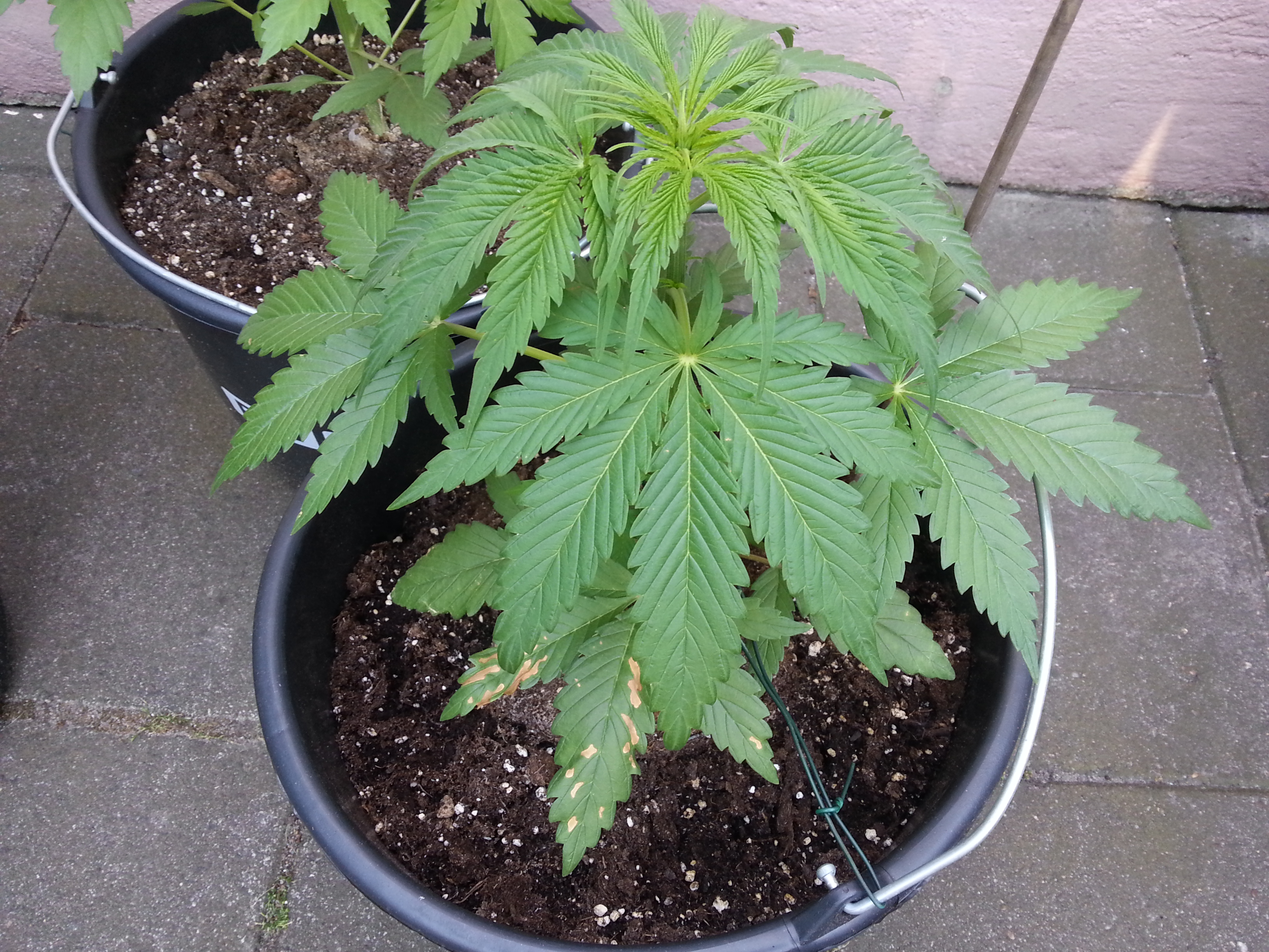 Aangezien deze twee planten in een voedingsarme grond staan buiten geef ik ze ook een groeivoeding mee, Alga Grow van Plagron voor de nieuwsgierigen.