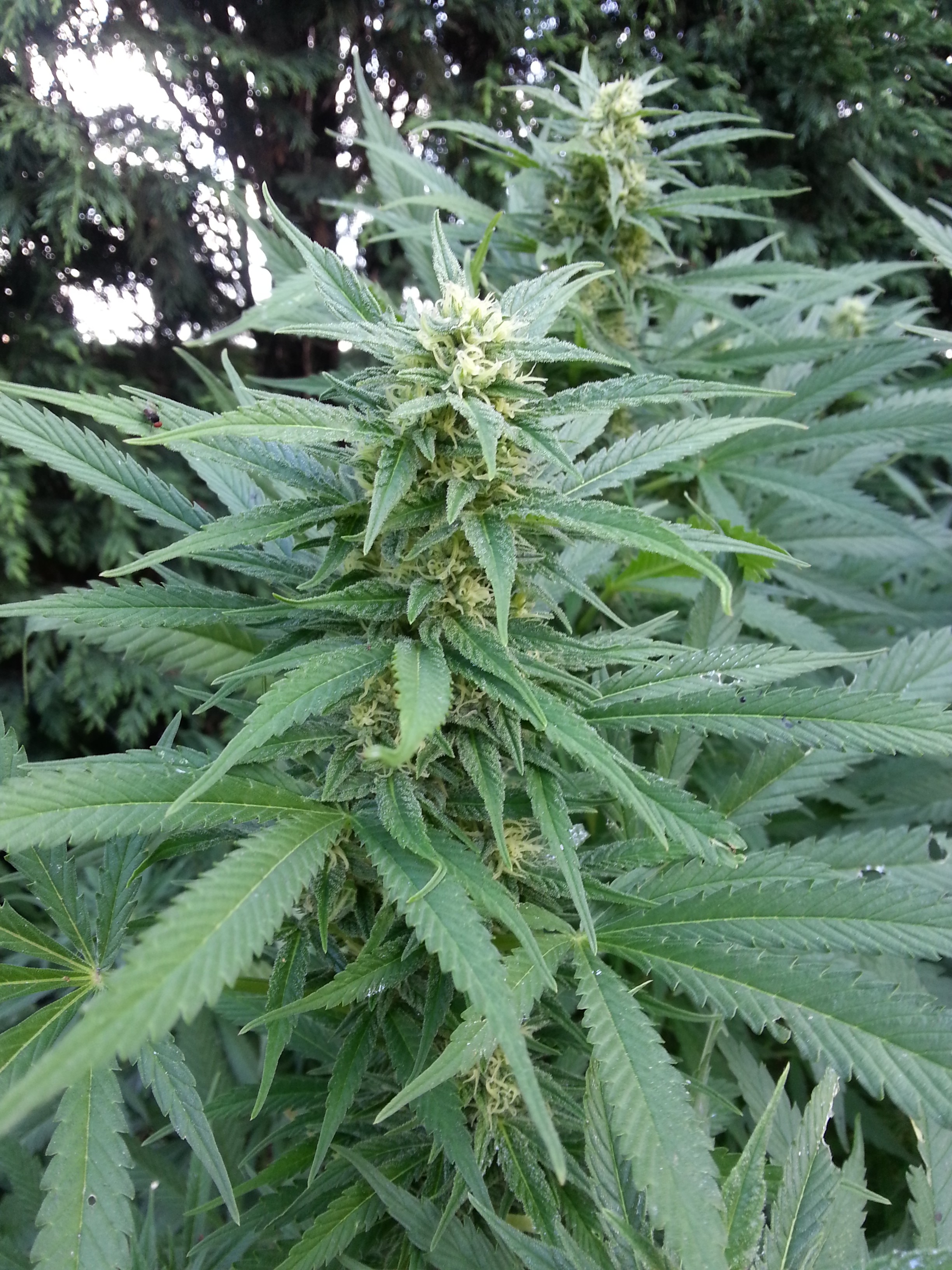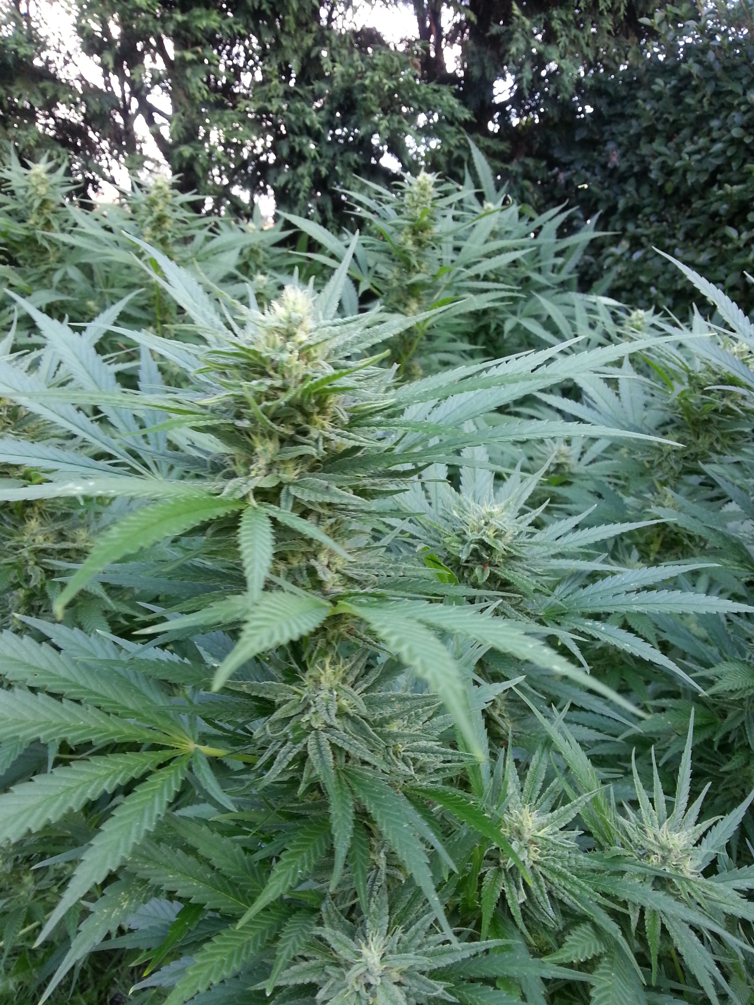De afgelopen week was het inderdaad nog heerlijk weer in Nederwietland. Maar vannacht hebben de toppen van mijn buitenwiet planten wel kennis gemaakt met de eerste noemenswaardige najaarsbuien. Gelukkig gaat dat gepaard met een aardig briesje die de buds na de buien weer redelijk snel droog blaast. Vocht is eigenlijk niet zo’n probleem voor toppen zolang het maar weer kan verdampen, het grootste gevaar voor toprot is niet de regen, maar hoge luchtvochtigheid. De wind blaast de toppen redelijk snel droog zodat het niet kan gaan rotten en zolang de dames geen toprot hebben laat ik ze lekker staan.