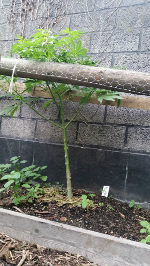 De zijtakjes schieten als een speer omhoog en de hoofdtak groeit sterk verder. Om deze groei te controleren en ervoor te zorgen dat mijn plant op geen enkel vlak energie moet verspillen, zal ik in de komende week een kleine takselectie uitvoeren. Hierbij verwijder ik de nu nog kleine vertakkingen die zich onder de toppen die al omhoogschieten bevinden. Deze vertakkingen bevinden zich onder teveel bladmassa waardoor ze weinig licht krijgen en dus ook amper groeien. Die vertakkingen zijn pure energieverspilling voor de plant aangezien je van deze takjes amper iets oogst. Deze plant vraagt werk maar het is en blijft een pracht. Daarom heb ik natuurlijk ook stekken van deze dame gesneden en ben ik zeer benieuwd hoeveel dit avontuur zal overleven.
