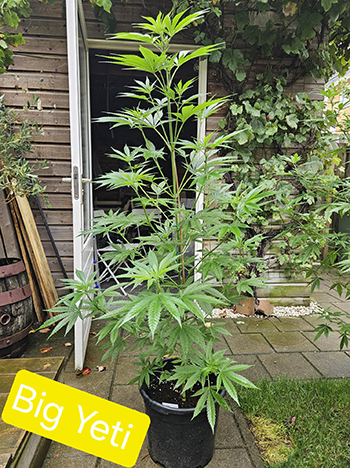 Update 2 augustus 2024: Kleine update vanuit het oosten. De autoflowers hebben het helaas niet gered op de Erdbeer na. Deze staat klaar om geoogst te worden. De Big Yeti doet zijn naam eer aan. Dit is een flinke boom geworden, hopelijk schiet ze snel in de bloei.