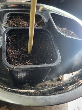 Ik heb de overlevers dan ook in een grote pot gezet, en boven in de kweektent gezet. Daar kan het harige pluizige monstertje niet bij. Het is er ook wat frisser doordat ik daar een invoer van verse lucht heb. Hier zal ik ze laten staan tot IJsheiligen.