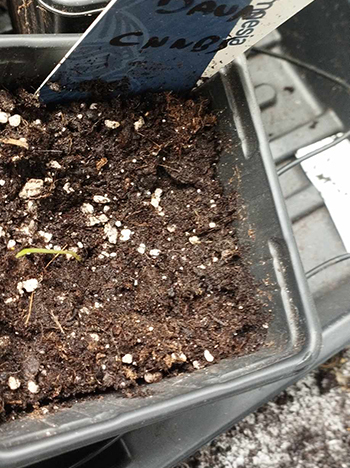 Met een houten eetstokje prik ik een gaatje in de toplaag van de aarde. Liever iets dieper dan ondiep in verband met soms scheef groeien. Pinknageltje diep of zo (nee niet die gitaar spelende oom, gewoon je eigen). De zaden van SeedStockers zien er allemaal mooi volgroeid uit, dus ik ga er vanuit dat ontkiemen geen probleem gaat zijn.