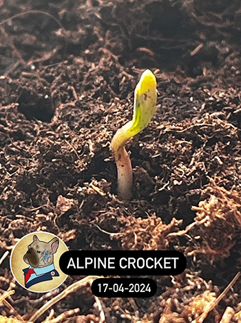 Vier dagen later (op 14-4) is als allereerste de Dutch Treat boven de grond komen kijken wat voor wereld dit is… Op 15-5 kwam Erdbeer ook boven. Alpine Crocket heeft ons even in spanning gehouden maar kwam op 17-4 ook de de zon opzoeken. En dat op een dag vol met regen en hagel – toch een beetje zon in huis!