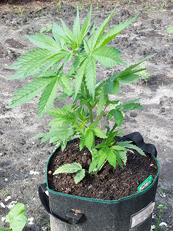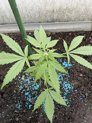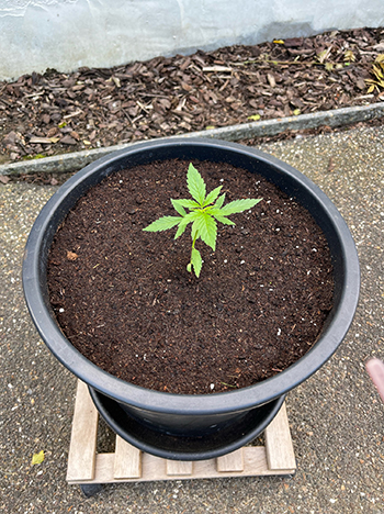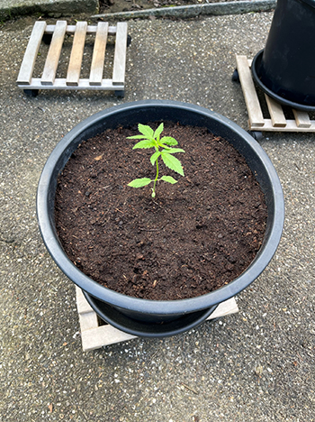 Omdat ik niet zozeer voor een grote hoeveelheid eindproduct en kolossale planten ga, maar liever een compacte groei en een zo hoog mogelijk potentieel probeer te bereiken, zet ik de twee in bakken van 7 liter. Deze heb ik gevuld met een bodem kleikorrels en een mix van licht bemeste grond, een klein beetje kokos, bat guano, beendermeel, vinassekali, lavameel en mycorrhiza schimmels. Zo hoop ik zeker tot in de bloeifase genoeg voedingsstoffen te hebben, en te bufferen voor de bloei.