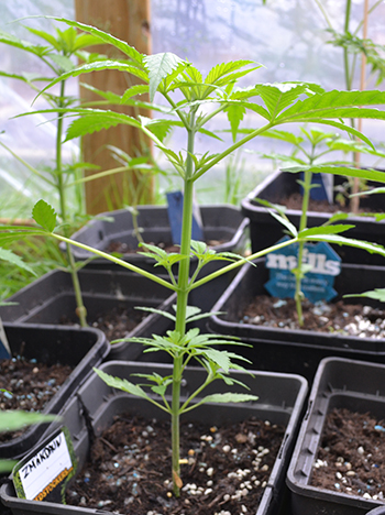 Alle dames op de foto’s zonder label zijn Big Yeti’s. De twee autoflowers die het overleefd hebben staan in de terracotta potjes, en bij uitstek het gezondste plantje is de Zmäkdaun.