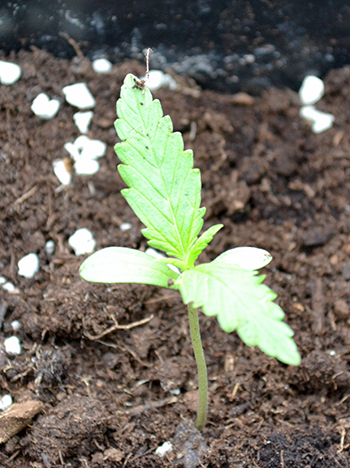 M’n twee andere dames ongeveer van hetzelfde. De eerste van de twee in de tent is de Erdbeer. Deze is zo’n 40 cm en bloeit ook al. De Dutch Treat blijft ook zo klein maar doet nog niet zo veel… De drie nieuwe zaden zijn net in ’t zand gegaan en daar is er eentje (de Erdbeer) net van boven gekomen.