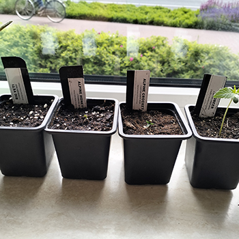 Update 6 juni 2024: alle ontkiemde zaadjes zijn in mei opgegeten door de slakken. Echt een drama. Gelukkig krijgen we een nieuwe kans. We hebben even gewacht op warmer weer. Deze week moesten we er echt aan geloven: de zaadjes zijn de grond in gegaan. Nu hopen op meer geluk.