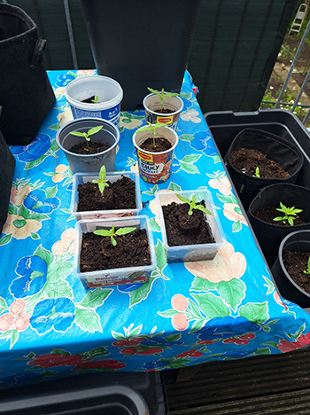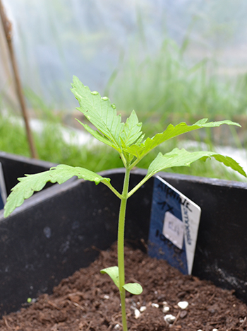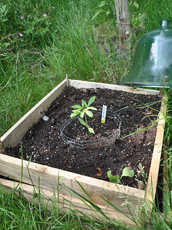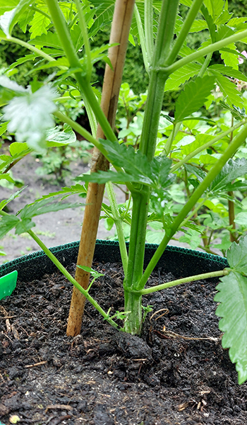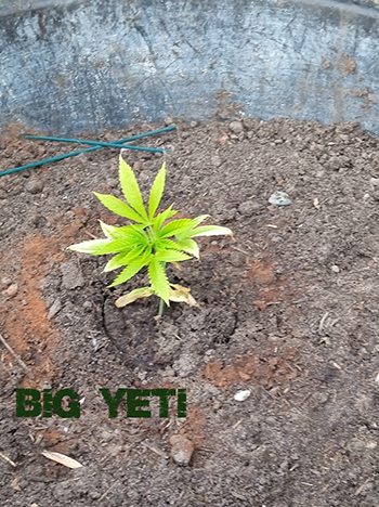 Zo te zien kan de Yeti het gelukkig wel aan, er lijken twee nieuwe hoofdtakken te ontstaan. Alle planten hebben hun eerste shot groeimest gehad, en zien er gezond uit. Het lijkt er op dat de slakken geen interesse hebben, want er zijn, in tegenstelling tot de groentes elders in de tuin, geen vraatsporen te zien.