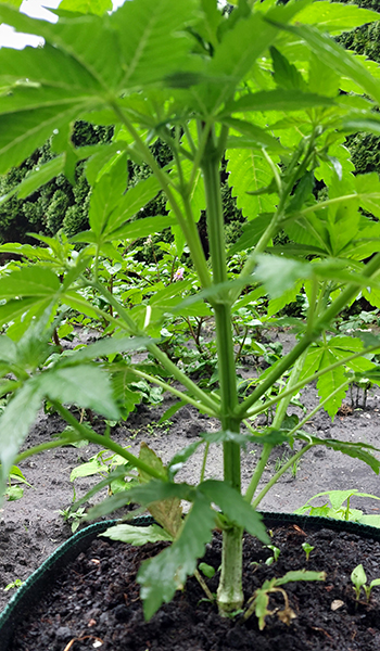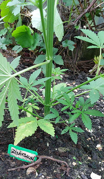 De Zmäkdaun gaat nog steeds als een tierelier en heeft vooralsnog weinig tegenslagen gehad. Ze is al bijna een meter hoog en ik zal binnenkort ondersteuning moeten gaan zoeken, voor de al groter wordende zijtakken.