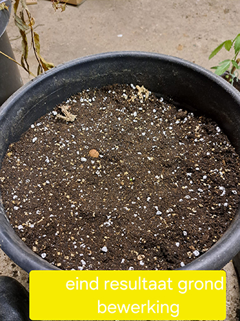 Ze staan nu alledrie buiten te genieten, ik heb foto’s toegevoegd van de grond samenstelling en laag opbouw in de pot. Ik heb potgrond van mijn lokale tuinder gebruikt, en gemengd met perliet en vermiculiet. Mijn maatje heeft een iets andere opbouw van de grond samenstelling gemaakt. Zie hieronder wat hij gebruikt heeft: