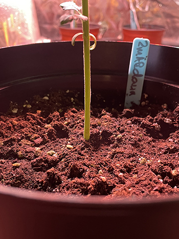 Update 5 juni 2024: Groeizaam weer hier in het Noorden. De Dutch Treat voelt zich op zijn gemak in de kas zo te zien, de groei zit er goed in. De Alpine Honey Lemon staat buiten, fier in de wind. Goed voor een stevige stam. Alleen de Big Yeti …is niet meer zo big. Het heeft hard geregend en gewaaid en het lijkt hier inmiddels op het resultaat van een een mislukte trim sessie. De top is geknakt…