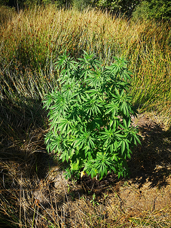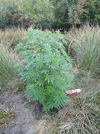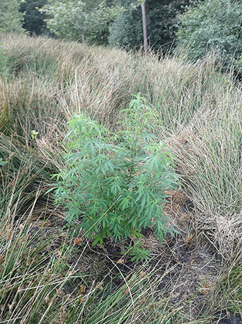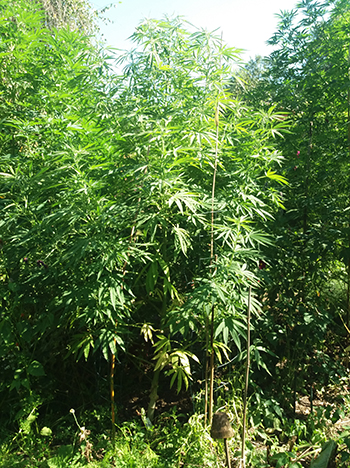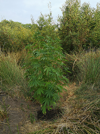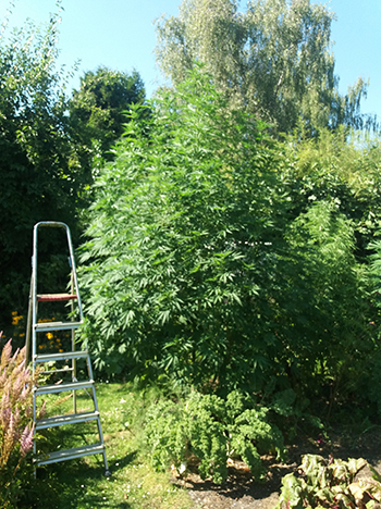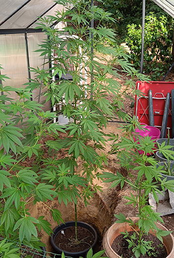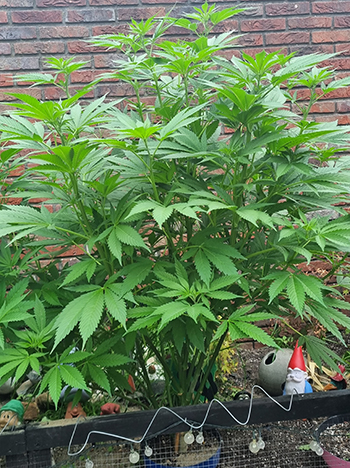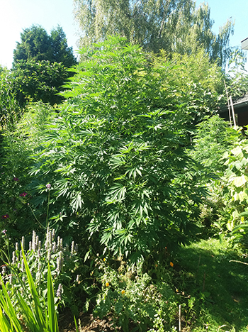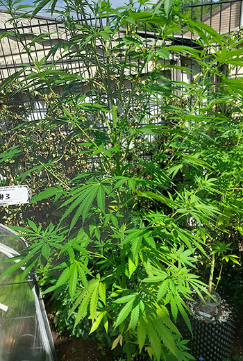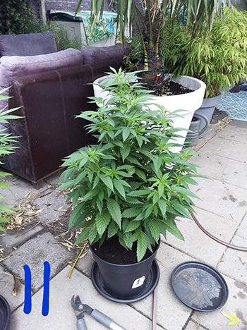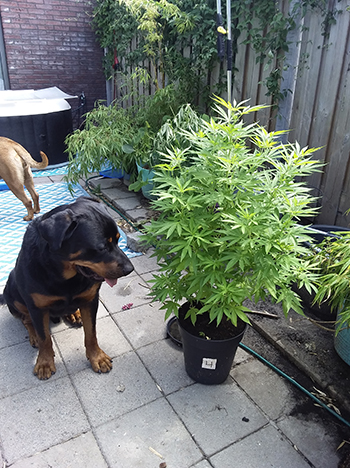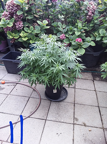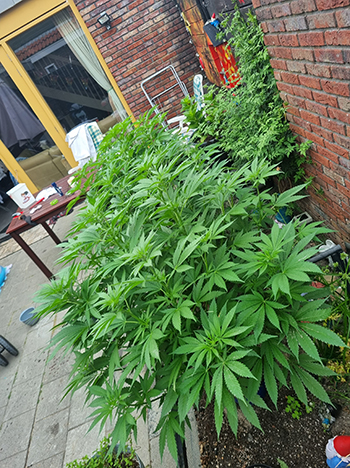 #3 is ruim 3,30 meter hoog. Wat een mooierd! Ook heb ik veel okselscheuten gediefd, om zo hopelijk wat grotere hoofdtoppen te creëren. Nummero #4 is nu ook bijna 3 meter hoog. Een mooie stevige plant. Ook deze is getraind en gediefd dus klaar voor de bloeiperiode. Nummer #5 staat veilig tussen haar grote zussen, hopelijk gaat dat haar de Hollandse herfst (die vandaag met 32 graden nog héél ver weg lijkt) helpen doorkomen.T is een mooi, maar kwetsbaar plantje.