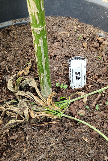 Update 28 juli 2022: De planten gaan een stuk beter nu ze wat extra voeding gekregen hebben. Ze zien mooi groen en groeien goed.