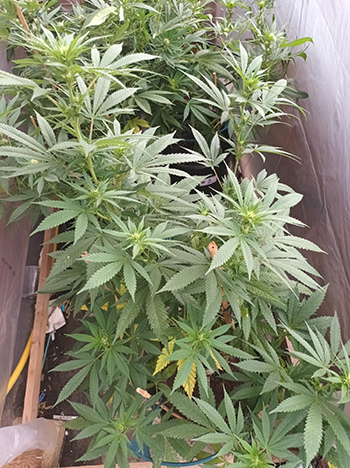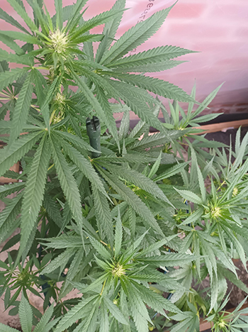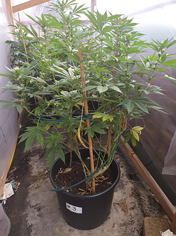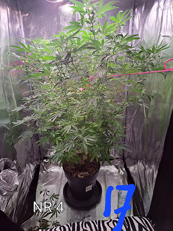 Het is jammer dat ik niet zoveel ruimte in m’n schuur had om deze twee naast de andere drie te plaatsen, want die doen het goed (de #2 bruce lemon diesel, #3 pineapple poison en #4 lemon OG). Er zitten al aardig wat lekkere toppen aan. En dan te bedenken dat ik ze alle drie aardig in de lengte gesnoeid heb; iets dat nodig was om ze binnen te kunnen zetten. Ze ruiken heel goed dus ik ben er ook zeer benieuwd hoe ze smaken. Als ik m’n schuurtje in kom begroeten ze me al met hun geur. Heerlijk!
