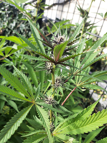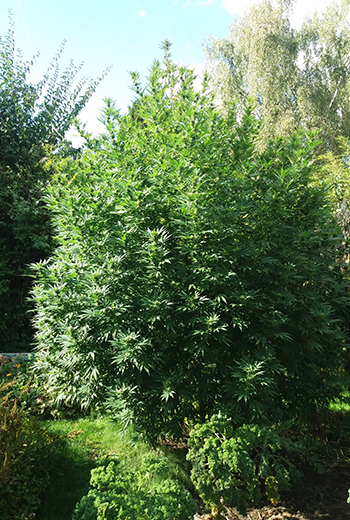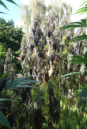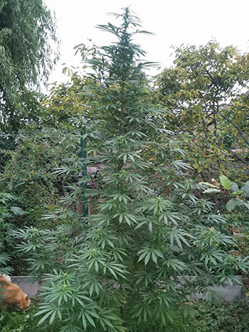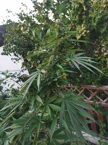 Update 22 september 2022: Het weer is snel omgeslagen de afgelopen weken. Het is herfstig in de tuin, en dat gaat de ene plant beter af dan de andere. Elke ochtend hangen er dauwdruppels aan de planten en de kruisspinnen maken prachtige webben tussen de bladeren en groter wordende toppen. De Bruce Lemon Diesel in de kuip heeft het zwaar, ze heeft bijna al haar schutbladeren al verloren maar heeft nog zeker twee weken nodig om een beetje af te rijpen voor de oogst.
