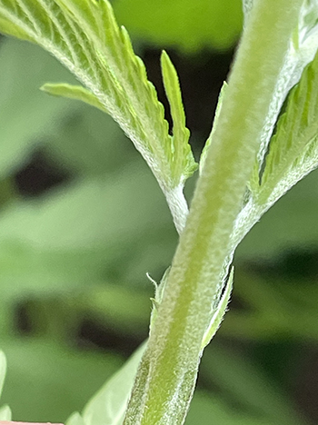Update 2 augustus 2023: Hey hey, zijn we weer met een update 😁 Ja, het slechte weer zoals bij iedereen (denk ik) kan natuurlijk stukken beter! Hopelijk wordt dat in het tweede deel van augustus goed gemaakt 🙈 Maar we zullen beginnen met de Dynamite Kiks. Die hadden we bij het vorige kweekverslag getopt, in de hoop dat ze wat breder zou worden, en ik heb de indruk dat ze al een beetje breder is. Ook zijn de twee zijtakken onder de getopte node mooi in de hoogte gegroeid. Ik heb er mijn vinger bijgehouden op de foto, zodat je goed kunt zien hoeveel ze gegroeid zijn 😁