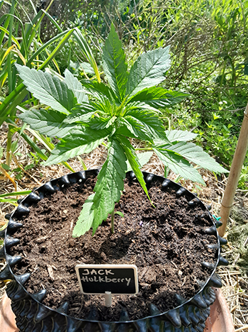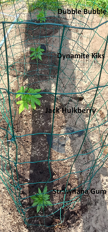 Dinsdag 23 mei 2023 werden mijn bomen gesnoeid. Dat zorgt voor veel meer licht en voorlopig geen vreemden meer in mijn tuin. Dus op woensdag 24 mei 2023 zijn de Jack Hulkberry en de Strawnana Gum naar buiten gegaan en op donderdag 25 mei 2023 volgden de #25 Dynamite en de Dynamite Kiks. Voorlopig staan ze op een tafel, in de hoop geen slakken aan te trekken.
