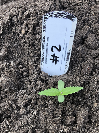Na een zomerse regenbui van een paar dagen geleden zijn de naaktslakken tot leven gekomen. Voor de nacht in de regen heb ik ze verplaatst onder een ligstoel. De volgende ochtend trof ik dit (zie onderstaande foto) aan. Naast de Super Sativa Seed Club zaadjes had ik nog 6 andere plantjes. Van de 11 in totaal zijn er nog 3 plantjes over die ik niet onder de stoel heb gezet. Alleen nummer #2 is niet opgegeten. Ik baal enorm. De slakken sporen waren in het aarde te zien…