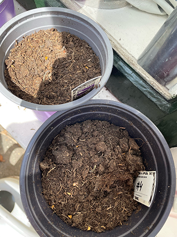 Update 19 mei 2022: Hier wat foto’s met de plantjes die zijn opgekomen. Nummer 1 en 4 staan in de volle grond en nummer 2 en 3 zijn nu ook ontkiemd en boven de grond. Deze zullen binnenkort ook in de volle grond komen te staan. Tot nu toe doet nummer 4 het het beste.