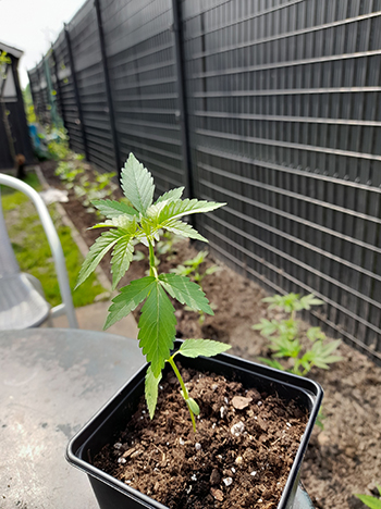 Mijn Strawnana Gum was als eerste uitgekomen en is ondertussen de kleinste van de vier planten geworden. De 25# Dynamite steekt er al een stuk bovenuit… Tijd voor een spliff, de nieuwste plaat van Zion Train op de speaker, en de zon op mijn tuin… Want ja hoor, weed planten houden ook van Reggae en Dub.