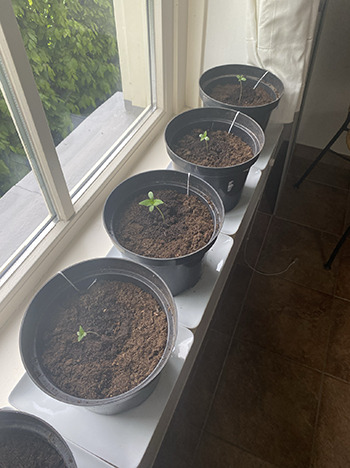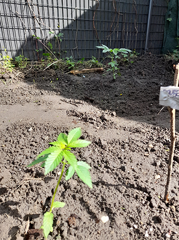 Update 13 mei 2023: De zaadjes zitten in de grond; de #25 Dynamite en de Jack Hulkberry steken er al bovenuit.