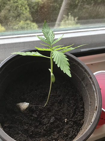 Dag 13: Alle vier groeien ze lekker door. Terloops werp ik nog een blik naar het Jack Hulkberry zaadje dat ik maar gewoon in de grond had gestopt…. en er is wat te zien! Jahoeee! Jack Hulkberry komt ook op! De vier mogen van mij naar buiten. Jack zet ik nog even voor het raam.