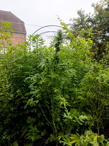 De kas heb ik door het slechte weer nog niet volledig afgemaakt. De bodem is er nog deels gras en dat ademt ook en zorgt voor de nodige vochtigheid die we niet echt willen. Dus is de Supafreak buiten beter af dan binnen maar ze groeit mooi verder. Ik denk dat ze al een metertje hoog is nu.