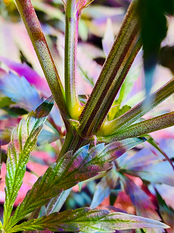 Gewapend met vlijmscherpe snoeischaar manoeuvrerend door het gewas, op zoek naar verse groeipunten springen een paar dingen in het oog. Bijzonderheden die ik nog niet eerder in deze mate heb mogen waarnemen in voorgaande kweekronden. Tussen de uit gefeminiseerd zaad afkomstige dames bevindt zich wel eens een bijzonder individu met wat afwijkend groei- en bloeigedrag.