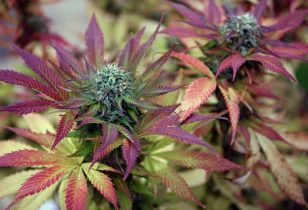 Bloeiende wietplanten in het rode licht van HPS kweeklampen. Foto: Eric Limon, Shutterstock