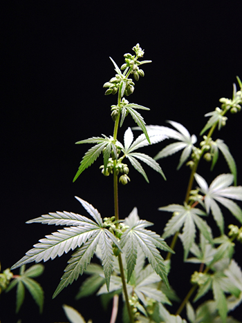 Een enkele keer kan het gebeuren dat wietplanten hermafrodiet worden. Ze ontwikkelen dan zowel mannelijke als vrouwelijke bloemen. Foto: Holly Mazour, Shutterstock