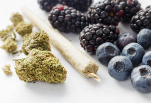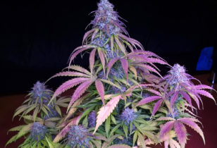 Blue Cheese bevredigt vele zintuigen! Paarse toppen voor het oog, veel THC voor lichaam en geest en een penetrante geur voor de neus.