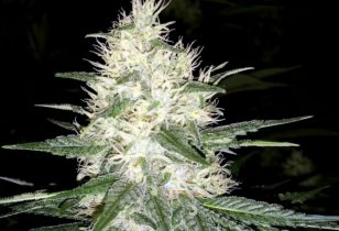 Black Widow, een sterke en weerbare indica die in 7 tot 8 weken afbloeit. Unieke menthol-nasmaak en zwaar stoned effect.