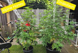 Buitenwiet kweekupdate #20: de lichtgevoelige wietplanten staan mooi te bloeien in de zon. Alpine Crocket wordt alvast geproefd en valt in de smaak!