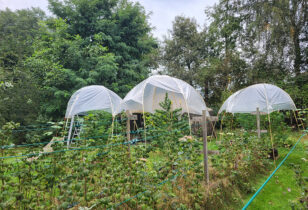 Gefjon, Mickey & Mini, Ewout, Mike en Beyond Context houden hun planten droog in het herfstweer. Wolkenwietje snoept met zijn lief van Erdbeer.