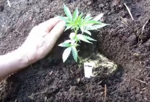 Video: cannabisgoeroe Jorge Cervantes maakt zijn handen vies en plant zijn buitenwiet in de volle grond