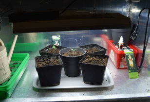 Barney Green ontkiemt twee nieuwe Sweet ’n Sour wietzaden tussen natte wattenschijfjes met waterstofperoxide.