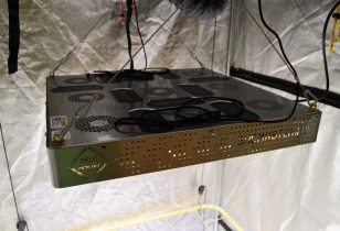 Barney rookt CBD Chronic en schrijft over Moon Walker Kush planten onder een splinternieuwe Budmaster led.