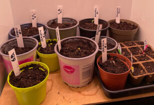 Bertjes ’top terps’ planten worden zo langzamerhand volwassen. Omdat het verschillende nieuwe soorten zijn controleert hij het geslacht van alle planten.