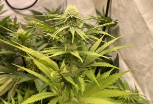 Week #9 (bloeiweek #5): Bio Bertje ontdekt bruine bloeiharen, mannelijke knoppen en hermafrodiete wietplanten, en probeert de schade te beperken.