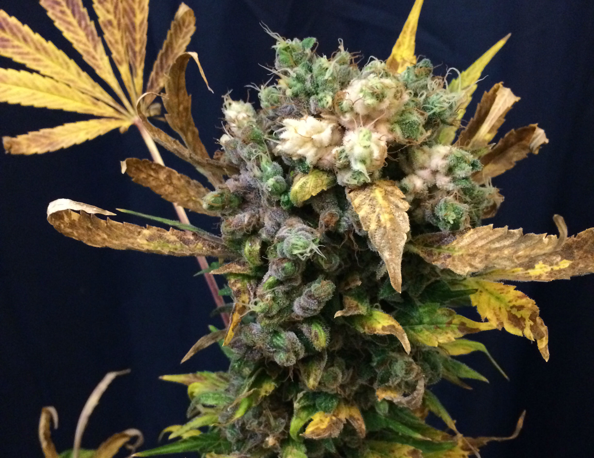Spannende ontknoping van de 12 AK-47 wietplanten van Bio Bertje. Toppen zo dik als onderarmen en een hoge luchtvochtigheid, er zijn betere combinaties.