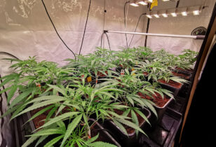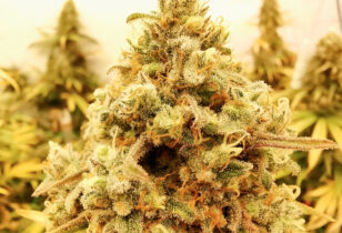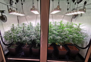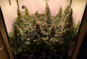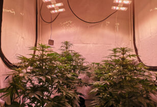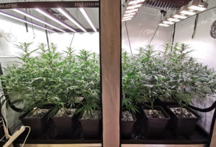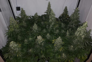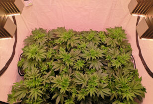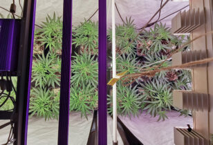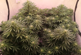 Serieus oogstgeluk: Bio Bertje oogst een smakelijk recordgewicht van zijn Serious Happiness wietplanten onder de twee nieuwe LEDs van SANlight.