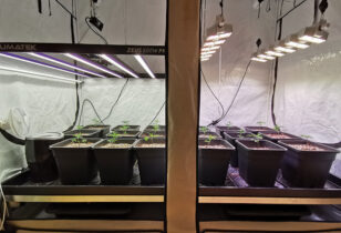 Bio Bertje start een vergelijkende kweek met 18 Cannalope Haze stekken, een 600W Lumatek Zeus en twee SANlight Q6W-Gen.2 LED kweeklampen.