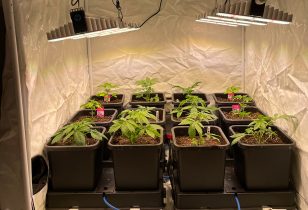 Nadat hij het lichtschema in week #3 op 12/12 zette worden de eerste toppen én de eerste verschillen tussen de twee kweeklampen zichtbaar.