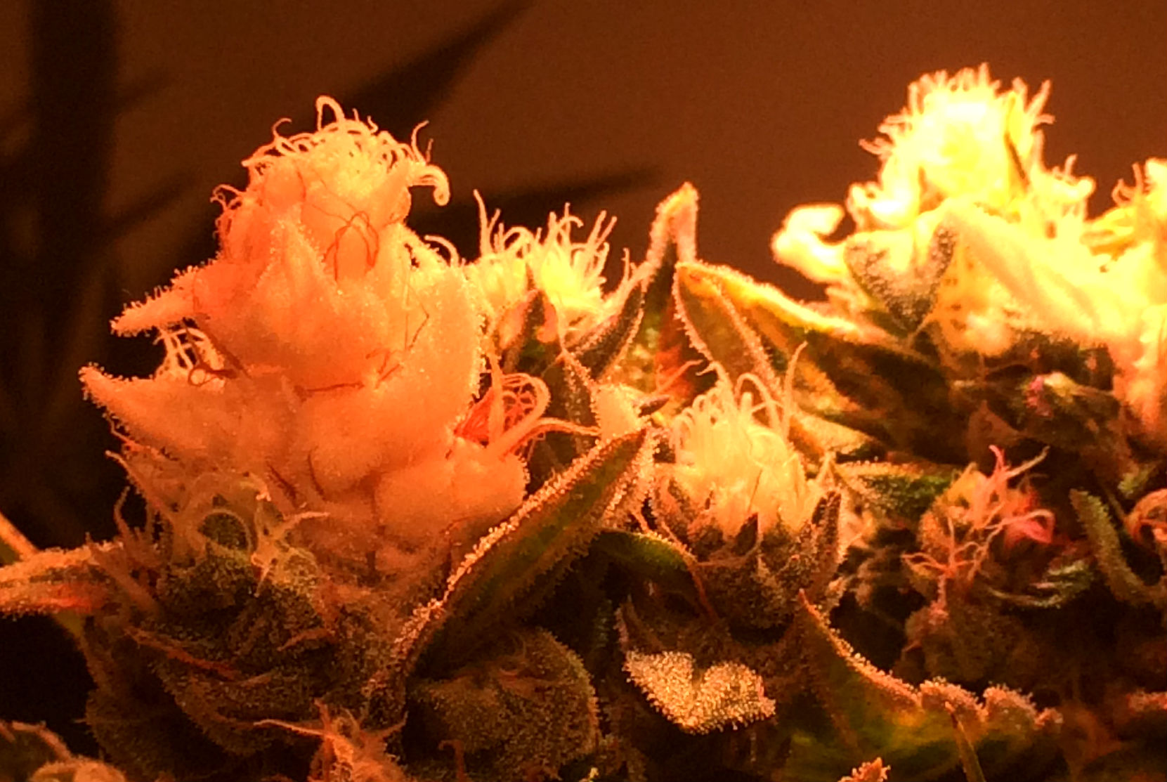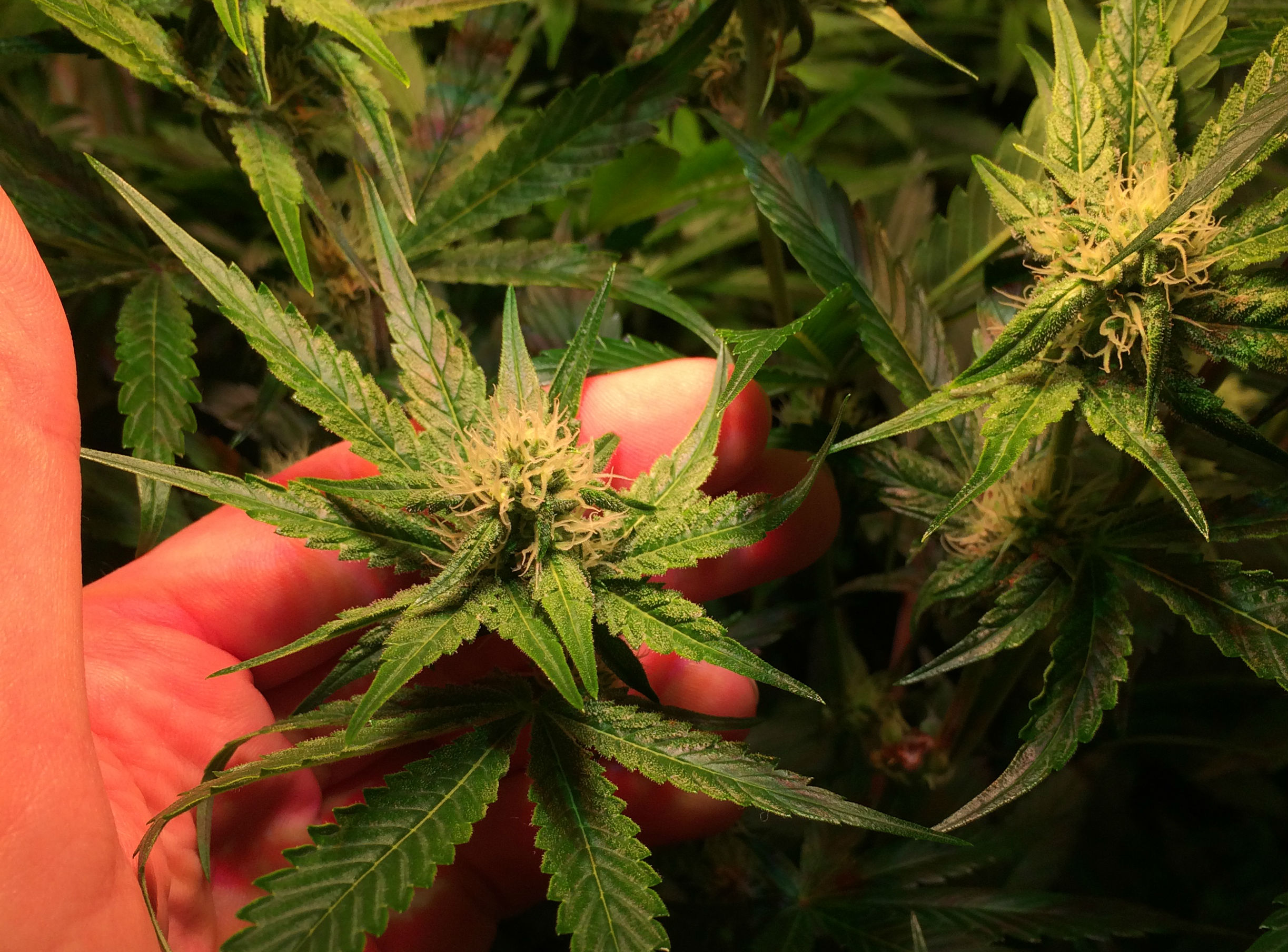 De wietplanten van Bio Bertje staan lekker te bloeien en vormen dan ook de eerste harskristallen.